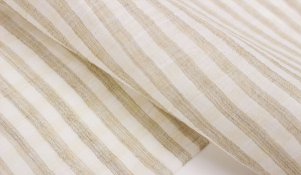 色は優しいベージュで、トップ染の糸で織り上げたボーダーチェック柄です。