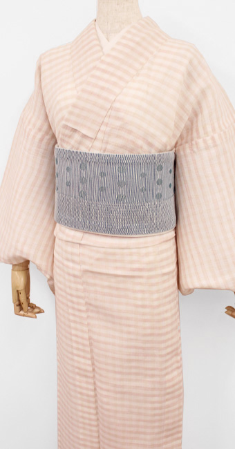 ■ 本麻夏着物:近江ちぢみ【仕立て上がり大特価品】 ≪ボーダーチェック:ピンク【Ⅿサイズ】≫ - 9008691¥30,800(税込)