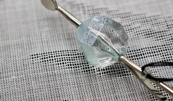 透き通ったブルーの玉に細かいラメがキラキラと煌めき、幻想的にボカシの入った色彩の簪です。