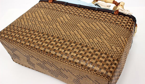 涼しげでシックな竹カゴバッグは夏にお薦めの色使いで、夏着物や浴衣に合わせると、ぐっと清涼感が上がります。