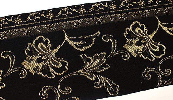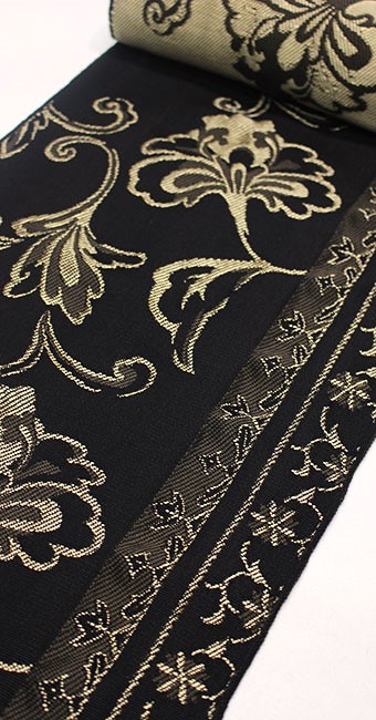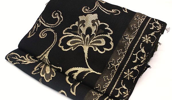 ■ おしゃれ八寸帯(仕立て込)) ≪米沢織:黒に金茶の更紗≫ - 290749¥77,000(税込)