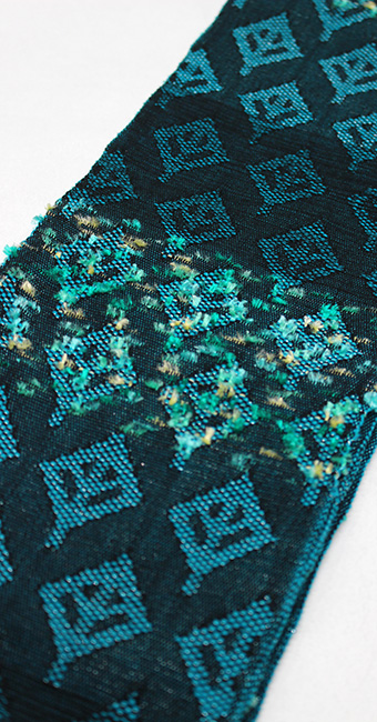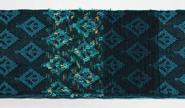 もう一方は樹木模様に緑の濃淡・イエローのフラッグモールが織り込まれ、続いて黒に青緑の樹木模様が織り上げられています。