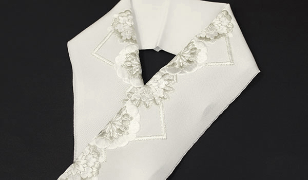 華やかな振袖着物に合わせて、振袖長襦袢には上品で洗練されたデザインの刺繡の半襟を付けられるのはいかがでしょうか。