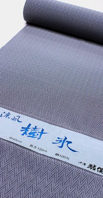 商品名の涼風:樹氷のごとく木目をイメージさせる幾何学のヘリンボーン模様を織った光沢のある紋織物です。