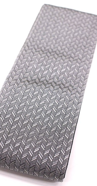 網代のような網目模様になったヘリンボン文様を、落ち着いたグレーで織った、近賢織物謹製の上質で粋な男角帯です。
