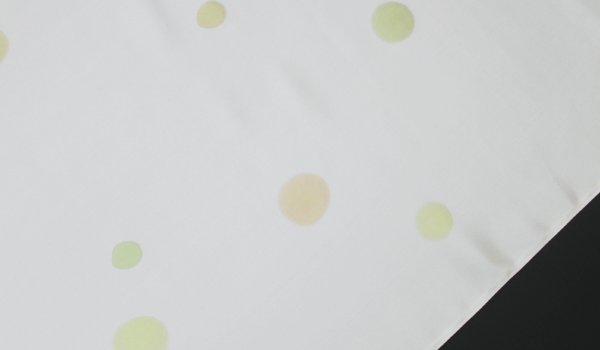 染めは白地に水玉模様を1色1色丁寧に引いた手染加工です。