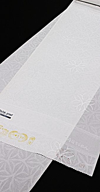本品は黄変防止加工を施した白の反物を、シュリンクプルーフ加工してあります。