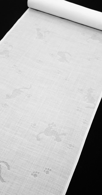 かわいい「猫」模様を織った本麻紋紗長襦袢の、「少々訳あり」B反お値打ち品です。