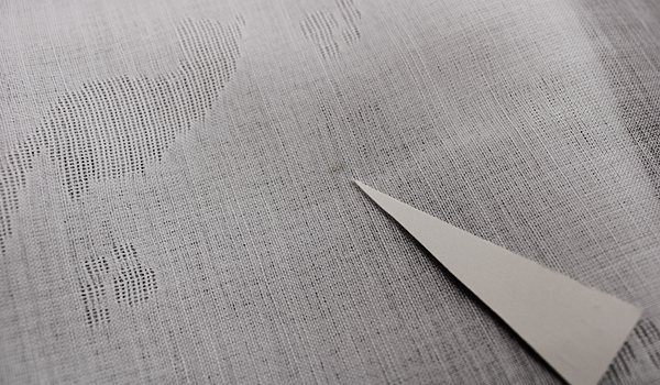 画像に写し出してあるような耳破れが2ヶ所(長さ70cmくらい、長さ13cmくらい)、薄っすら小さなシミが1ヶ所あるためB反になりました。