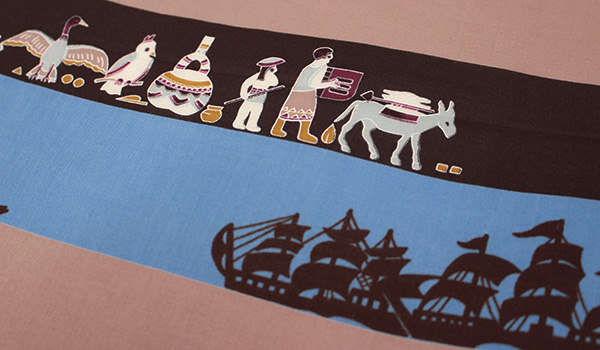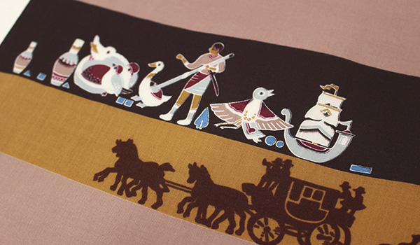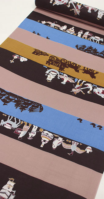 マルコポーロ紀行というタイトルのように、オリエンタルな模様が描かれたレトロな色彩のアンティーク小紋柄です。