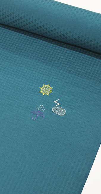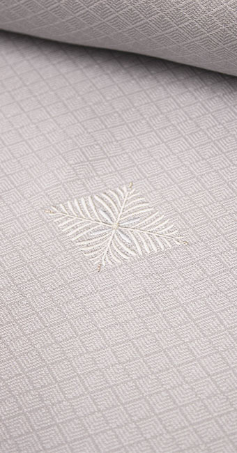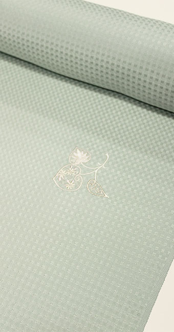 見た目は色無地のように見える本品は、刺繍を入れたことにより、遠目には無地に見えて、近くで見ると刺繍が浮かび上がって見える、シンプルで上品にお洒落な小紋着尺に仕上がっています。