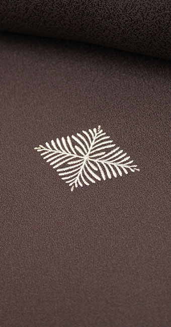 ■ 刺繍の小紋//正絹反物 松菱文の刺繍:ブラウン【生地幅42cmワイドタイプ】
