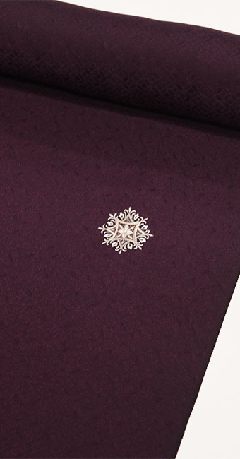■ 刺繍の小紋//正絹反物 オリエンタル文様の刺繍:ワインパープル