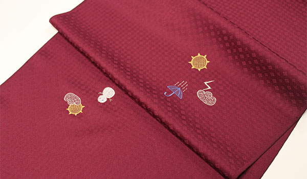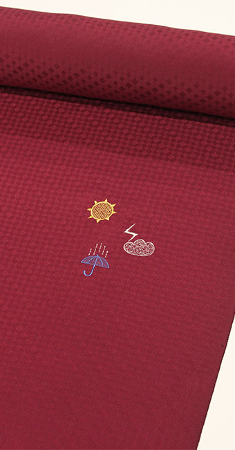 ■ 刺繍の小紋//正絹反物 お天気模様の刺繍:ワインレッド【生地は丹後紋意匠】