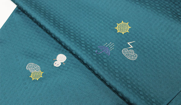 次の刺繍柄は実にモダンな模様で、遊び心溢れるデザインを刺繍にした小紋です。