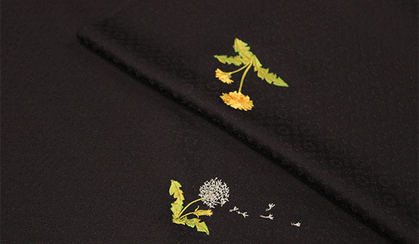 次は自然を感じさせるタンポポのデザインを飛び柄で刺繍した作品です。