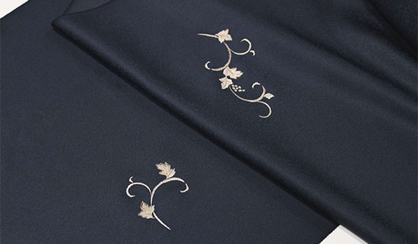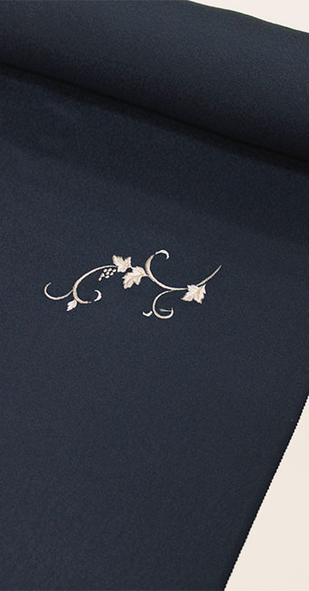 ■ 刺繍の小紋:正絹反物 :葡萄唐草文様の刺繍ネイビー 【生地//丹後紋意匠】