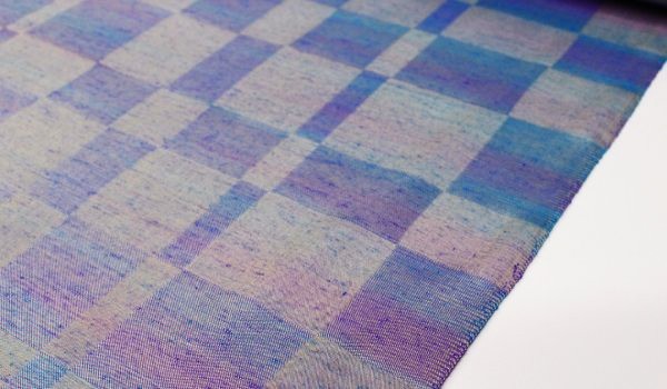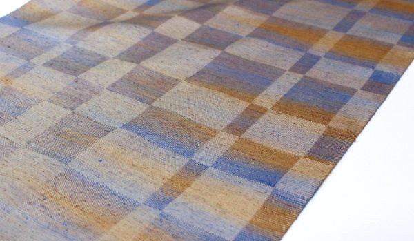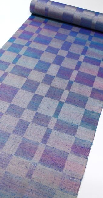 同じ織物ですが、経糸緯糸を変えることにより、光沢により見る角度で全く異なる見え方が楽しめる、筬園工房さんの紬です。