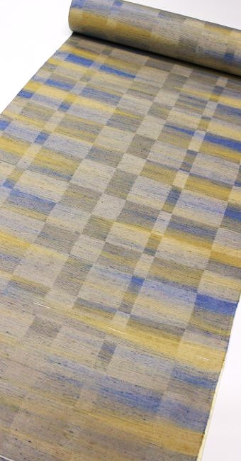 筬に工夫を凝らして、紋織で格子を織ることにより、この織ならではの独特な世界観が楽しめる素晴らしい紬の織物着尺です。