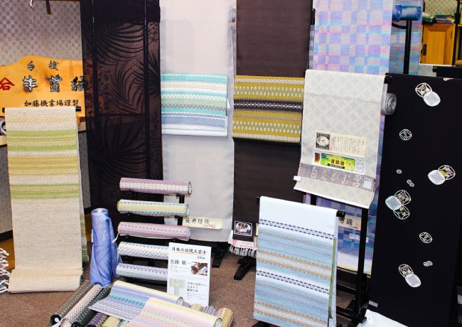 白鷹お召や雪花織の帯に、長井紬、米琉総絣紬、揺らぎ織紬など織の逸品をご覧頂けます。