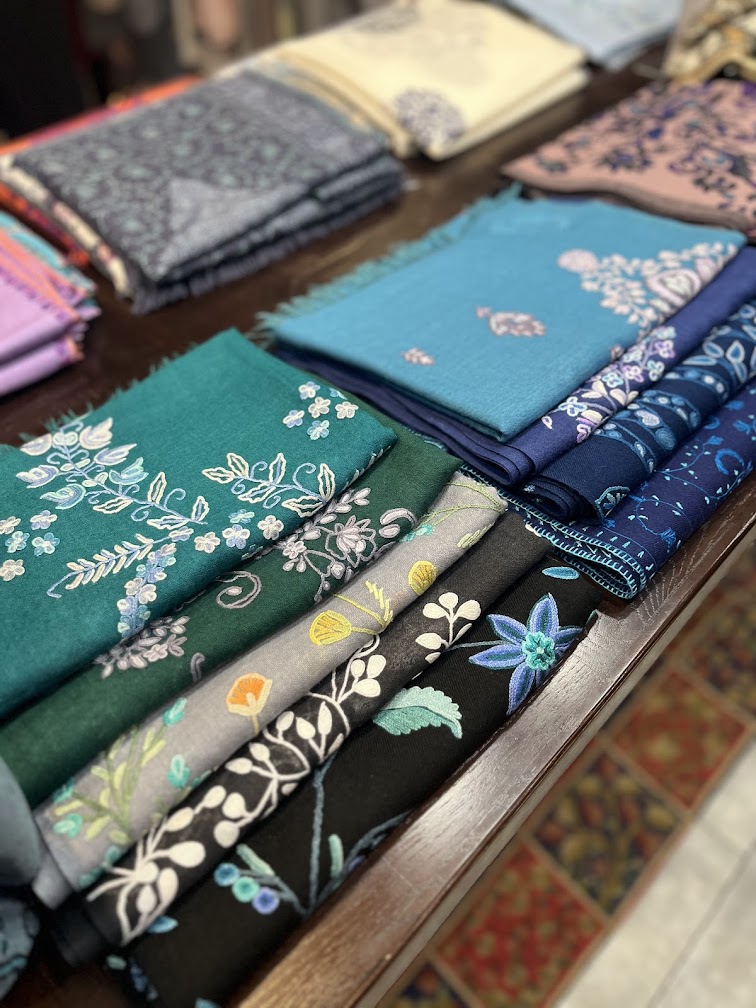 カシミール刺繡の素敵なストールやバッグなど扱っておられ、着物屋との初コラボになります。