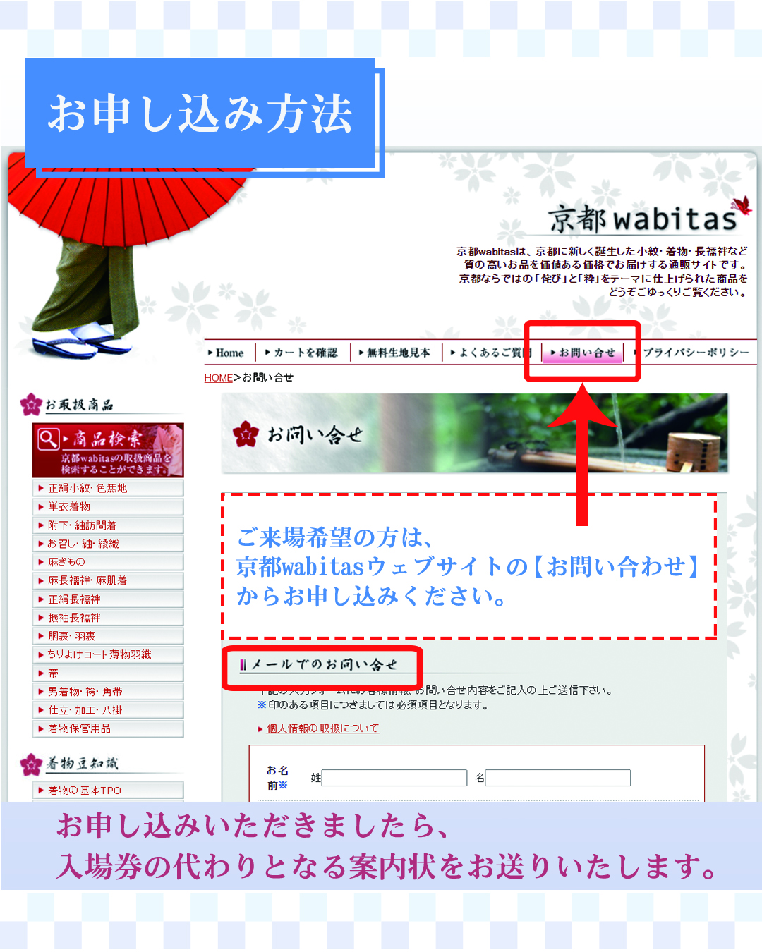 入場券をお持ちでない方は、お申込み頂けましたら、紙もしくはメール(画像)でお送りさせて頂きます。